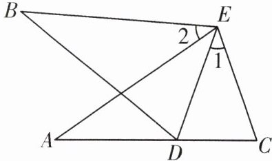 ∴∠1+∠AED=∠2+∠AED,即∠AEC=∠BED.在△AEC和△BED中,{∠A=∠B,AE=BE,∠AEC=∠BED,