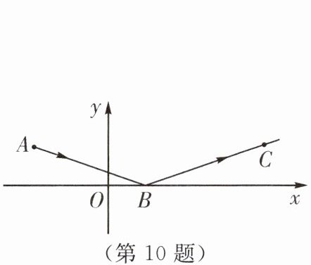 10. (2023·句容市期末)如图,一束光线从点A(-2,1)出发,经过x轴上的点B(1,0)反射后经过点C(m,n)(点A,点C是反射前后的对应点),则$\frac{1}{3}m - n= $