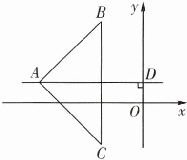 12. 如图,在平面直角坐标系中,过点 $ A $ 作 $ AD \perp y $ 轴,垂足为 $ D $,点 $ B $ 关于直线 $ AD $ 的对称点为 $ C $,连接 $ AC,AB,BC $,已知 $ AD = 10,OD = 2 $。