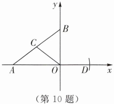 10. (2024·常州天宁区校级月考)如图,在 $ \triangle ABO $ 中,$ A(-4,0) $,$ B(0,3) $,$ OC $ 为边 $ AB $ 的中线,以 $ O $ 为圆心,线段 $ OC $ 长为半径画弧,交 $ x $ 轴正半轴于点 $ D $,则点 $ D $ 的坐标是______。