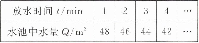 2. (2024·永丰县期末)一个蓄水池有水$50\ m^3$,打开放水闸门放水,水池里的水和放水时间的关系如表,下面说法不正确的是(