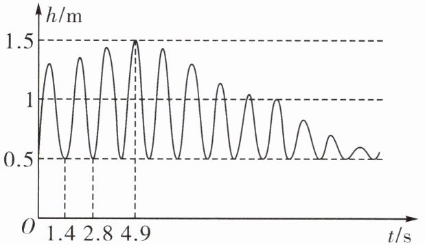 8. 小明帮助小芳荡秋千,在小明的助推下,秋千越来越高,秋千离地面的高度$h(m)与摆动时间t(s)$之间的关系如图所示.结合图象回答问题: