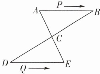 14. (2024·灌云县月考) 如图,$ AE $ 与 $ BD $ 相交于点 $ C $,$ AC = EC $,$ BC = DC $,$ AB = 8 cm $,点 $ P $ 从点 $ A $ 出发,沿 $ A \to B \to A $ 方向以 $ 2 cm/s $ 的速度运动,点 $ Q $ 从点 $ D $ 出发,沿 $ D \to E $ 方向以 $ 1 cm/s $ 的速度运动,$ P $,$ Q $ 两点同时出发,当点 $ P $ 到达点 $ A $ 时,$ P $,$ Q $ 两点同时停止运动,设点 $ P $ 的运动时间为 $ t ( s ) $。