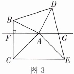 【深入探究】(3)如图3,∠BAD= ∠CAE= 90°,AB= AD,AC= AE,连接BC,DE,且BC⊥AF于点F,DE与直线AF交于点G.