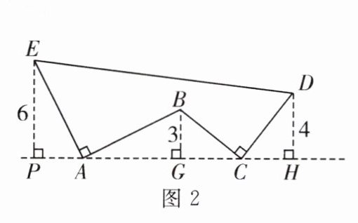 【模型应用】(2)如图2,EA⊥AB且AE= AB,BC⊥CD且BC= CD,请按照图中所标注的数据,计算图中实线所围成的图形ABCDE的面积.