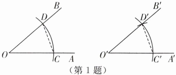 1. (2024·无锡梁溪区期中)请仔细观察用直尺和圆规作一个角等于已知角的示意图,请你根据所学的三角形全等有关的知识,说明画出$\angle A'O'B'= \angle AOB$的依据是 (