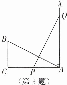 9. 如图,∠C= 90°,AC= 10,BC= 5,AX⊥AC,点P和点Q从点A出发,分别在线段AC和射线AX上运动,且AB= PQ,当点P运动到AP= ______