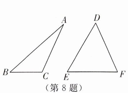8. (2024·海安市期末)如图,△ABC中,∠A= 24°,△DEF中,∠F= 66°,边BC,EF上的高相等,若AC= DF,则∠B的度数为