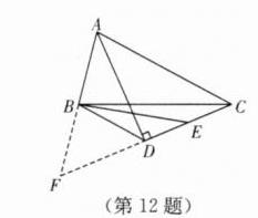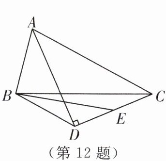 12. (2024·灌南县期中)如图,△ABC中,BC= 10,AC-AB= 6.过C作∠BAC的角平分线的垂线,垂足为D,点E为DC边的中点,连接BD,BE,则S△BEC的最大值为______.