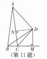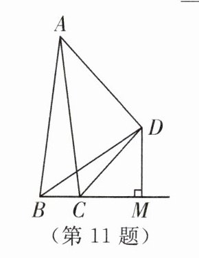 11. (2024·无锡锡山区期中)如图,B,C,E三点在同一条直线上,CD平分∠ACE,DB= DA,DM⊥BE于点M,若AC= 4,BC= $\frac{1}{2}$,则CM的长为______.