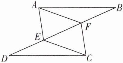 ∴BF+EF=DE+EF,即BE=DF.在△ABE和△CDF中,{AB=CD,∠B=∠D,BE=DF},