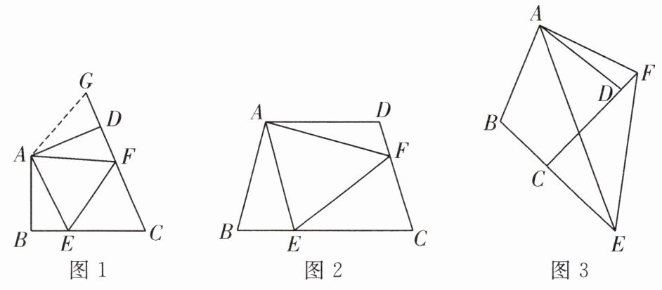 (3)结论:EF=BE−FD.证明如下:如图3,在BE上截取BG,使BG=DF,连接AG.