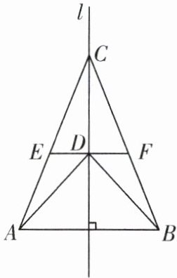 7. (2024·如皋市期中)如图,直线 $l$ 是线段 $AB$ 的垂直平分线,点 $C$,$D$ 是直线 $l$ 上两点,连接 $AC$,$BC$,$AD$,$BD$,过点 $D$ 作 $AB$ 的平行线分别交 $AC$,$BC$ 于点 $E$,点 $F$.