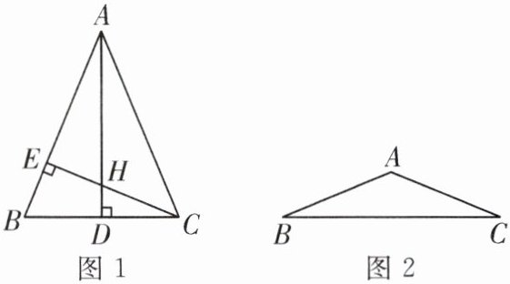 13. (2024·无锡滨湖区期中)在$\triangle ABC$中,$AB= AC$,$AD和CE$是高,它们所在的直线相交于点$H$。