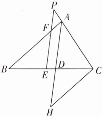 12. 如图,在$\triangle ABC$中,$AD平分\angle BAC$,$E是BC$上一点,$BE= CD$,$EF// AD交AB于点F$,交$CA的延长线于点P$,$CH// AB交AD的延长线于点H$。