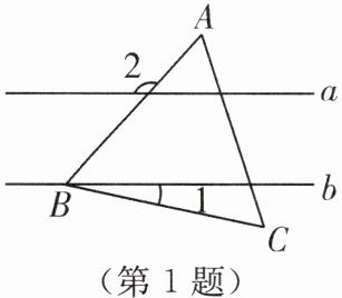 1. (2024·淮安淮阴区一模)已知直线 $a // b$,将等边三角形 $ABC$ 按如图方式放置,点 $B$ 在直线 $b$ 上,若$\angle 2 = 132°$,则$\angle 1$的度数为(