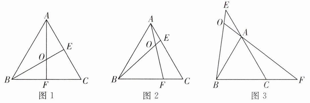 14. (2024·睢宁县期中)已知:如图1,在等边三角形 $ABC$ 中,点 $E$,$F$ 分别为边 $CA$,$BC$ 上的动点,且 $AE = CF$,直线 $AF$,$BE$ 交于点 $O$.