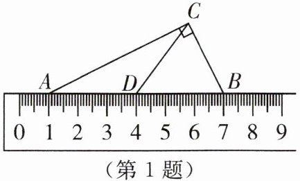 1. (2024·苏州工业园区期中)如图,一技术人员用刻度尺(单位:cm)测量某三角形部件的尺寸.已知$∠ACB= 90^{\circ}$,点$D为边AB$的中点,点$A,B对应的刻度为1,7$,则$CD$的长为(