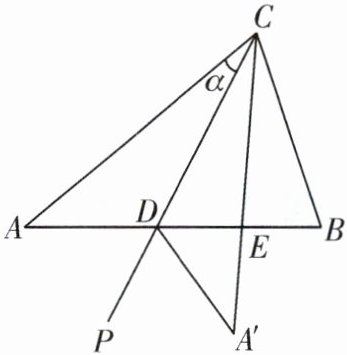 7. (2024·泗阳县期中)如图,$\triangle ABC$ 中,$\angle B = \angle ACB$,$\angle A = 40^{\circ}$,射线 $CP$ 从射线 $CA$ 开始绕点 $C$ 逆时针旋转 $\alpha$ 角 $(0^{\circ}<\alpha<70^{\circ})$,与射线 $AB$ 相交于点 $D$,将 $\triangle ACD$ 沿射线 $CP$ 翻折至 $\triangle A'CD$ 处,射线 $CA'$ 与射线 $AB$ 相交于点 $E$.