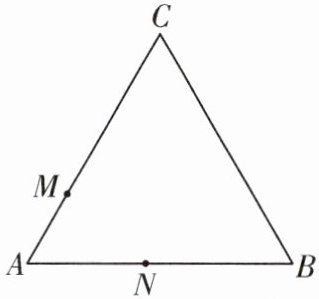 8. (2024·无锡锡山区期中)如图,$\triangle ABC$ 中,$AB = BC = CA = 12\mathrm{cm}$,现有两点 $M$,$N$ 分别从点 $A$,点 $B$ 同时出发,沿三角形的边顺时针运动,已知点 $M$ 的速度为 $2\mathrm{cm}/\mathrm{s}$,$N$ 的速度为 $4\mathrm{cm}/\mathrm{s}$. 当点 $N$ 第一次到达点 $B$ 时,$M$,$N$ 同时停止运动.