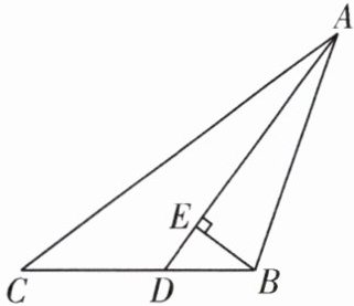 5. 如图,在 $ \triangle ABC $ 中,$ AD $ 是角平分线,过点 $ B $ 作 $ AD $ 的垂线交 $ AD $ 于点 $ E $,$ \angle ABE = 2 \angle C $。求证:$ AC - AB = 2BE $。