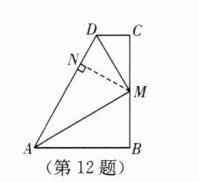 12. (2024·仪征市期中)如图,$\angle B = \angle C = 90^{\circ}$,$M$ 是 $BC$ 的中点,$DM$ 平分 $\angle ADC$,若 $\angle ADC = 100^{\circ}$,则 $\angle MAB = $______$^{\circ}$。