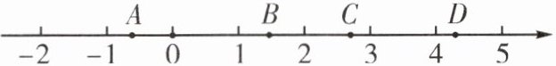 2. 如图,数轴上有A,B,C,D四个点,则下列说法正确的是 (