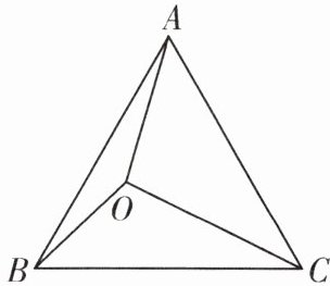 8. (2024·启东市校级月考)$O是等边三角形ABC$内的一点,$OB = 1$,$OA = 2$,$\angle AOB = 150^{\circ}$,求$OC$的长.(提示:将$\triangle AOB绕点O顺时针旋转60^{\circ}到\triangle CO'B$,连接$OO'$)