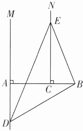 5. (2024·泰州海陵区期中改编)如图,$C是线段AB$上一点,直线$AM\perp AB$,射线$CN\perp AB$,$AC= 3$,$BC= 2$,在直线$AM上取一点D$,在射线$CN上取一点E$,连接$BD$,$ED$,$BE$. 若$\triangle ABD与\triangle BDE$全等,求$CE$的值.