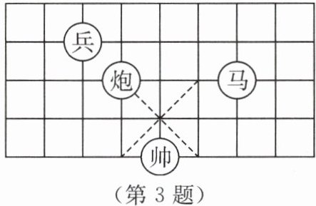 3. (2024·沛县期末)如图,在象棋盘上建立平面直角坐标系,使“马”位于点$(3,0)$,“兵”位于点$(-1,1)$,则“帅”所在位置的坐标是