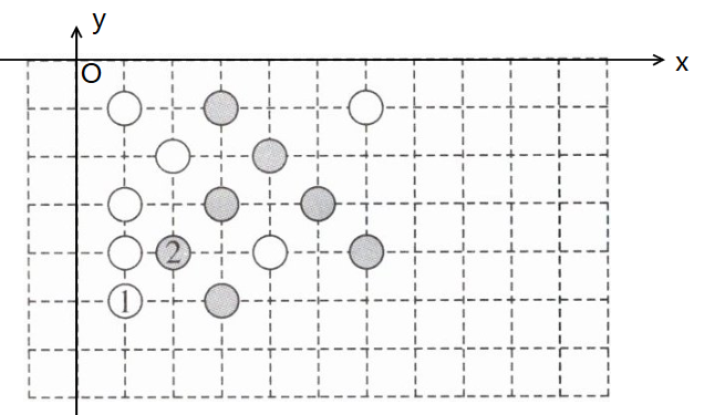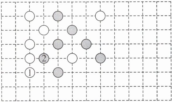 6. (2024·南丹县期中)同学们玩过五子棋吗?它的比赛规则是只要同色5子先成一条直线就算胜。如图是两人玩的一盘棋,若白①的位置是$(1,-5)$,黑②的位置是$(2,-4)$,画出平面直角坐标系,现轮到黑棋走,你认为黑棋放在图中什么位置就获得胜利了?