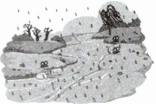 忽然,黄豆大的雨滴斜落下来,砸在地上,溅起无数朵水花。雨越来越急,越下越大。一会儿工夫,地上就水流成河了。远望,天地间雾蒙蒙的,宛如仙境一般。