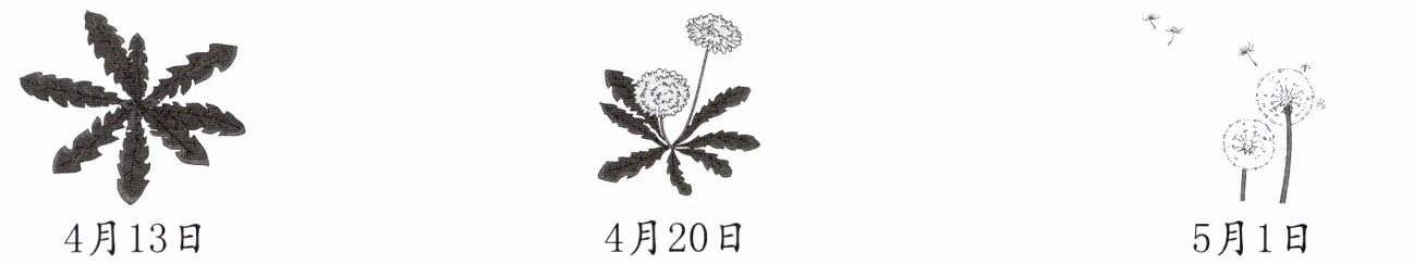 观察小全拍摄的蒲公英在不同生长期的照片,补充观察记录。