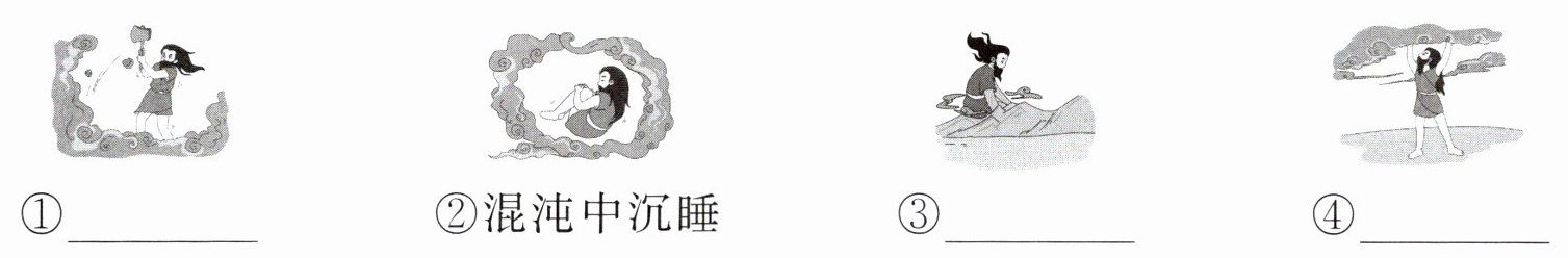 3. 讲讲故事 照样子给图片拟小标题,再排序,了解盘古是怎样开天辟地的。