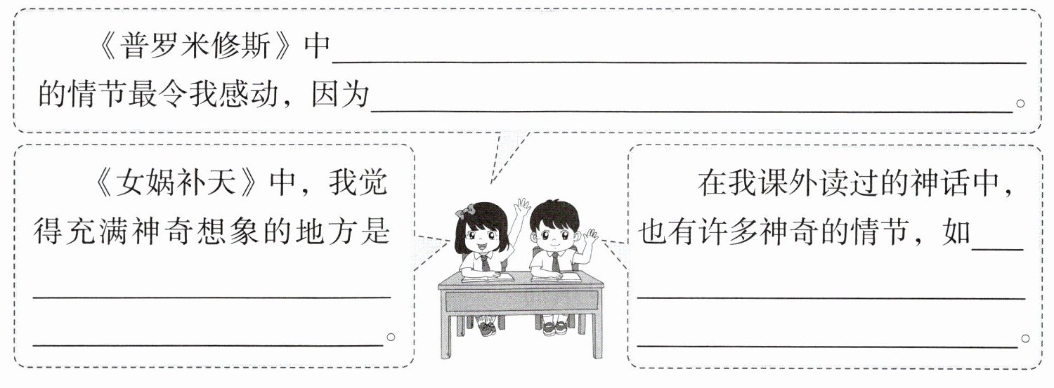 (2)语文要素 乐乐和小月正在交流阅读神话的感受,请你补全对话。