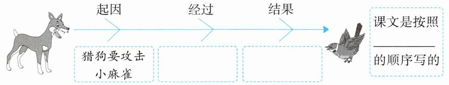3. 梳理写作顺序 梳理课文内容,说说事情的起因、经过、结果,再完成导图。