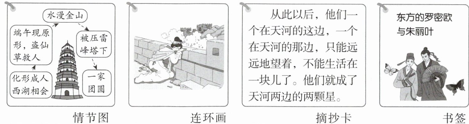 1. [第一关:赏成果,知故事]同学们在民间故事推荐会上,展出了自己的阅读成果。