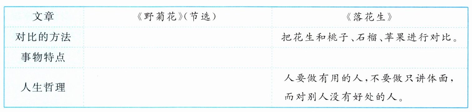 (4)比较短文和《落花生》的异同,把表格补充完整。