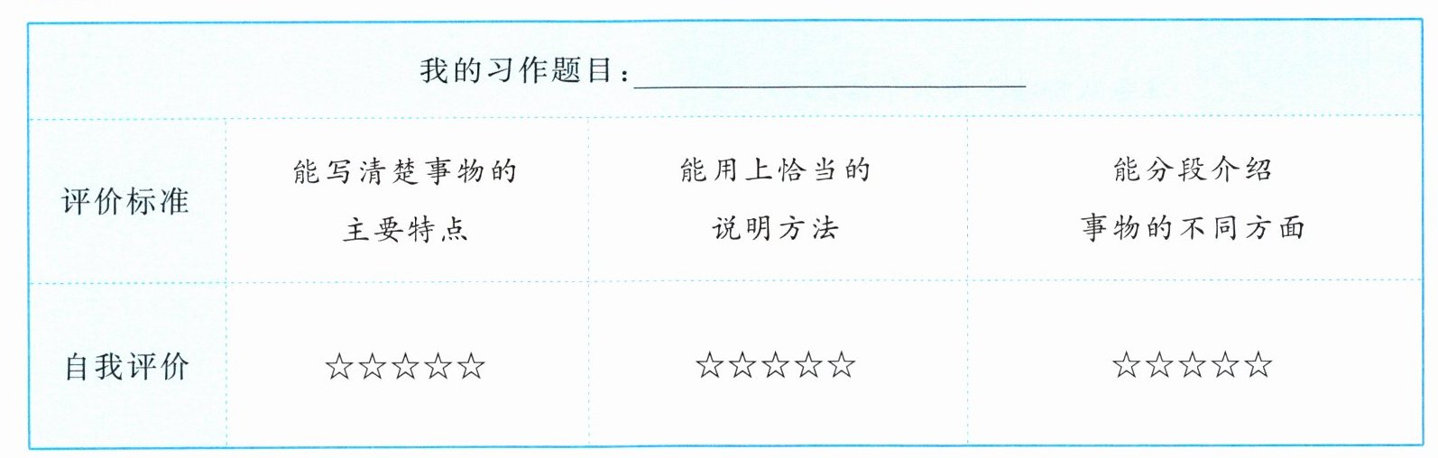 6. 评价 阅读自己的习作,根据评价标准进行自我评价,看看自己能得几颗星。