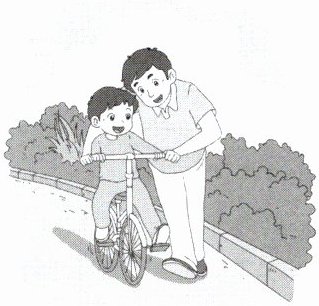 (6) 小全在网上看到了右面这幅漫画,想到了成长中第一次骑自行车的情景。你的成长中有没有类似的“第一次”,请你照样子写一段话。