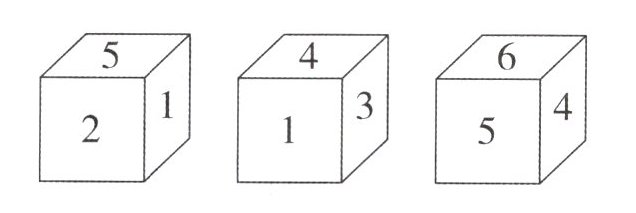 1. 有一个正方体,每个面上分别写着数字 1 至 6,从三个不同的角度观察如下图,数字“3”的对面是( )。