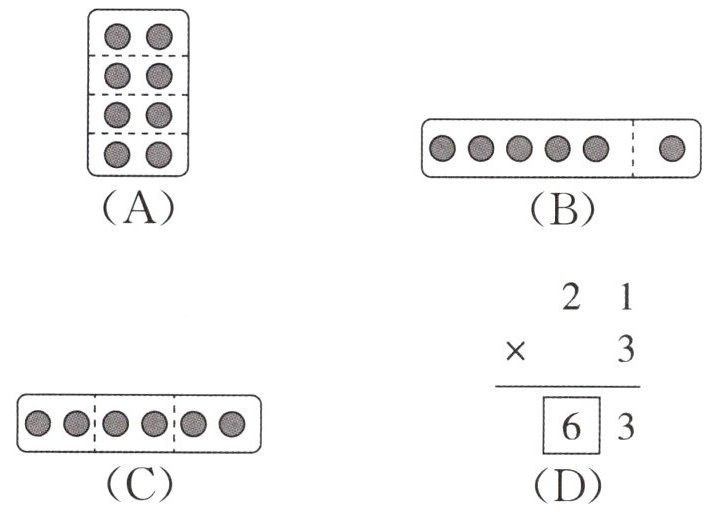 5. 小温期末复习整理了下面的图和算式,其中画框部分表示$2×3$的是(