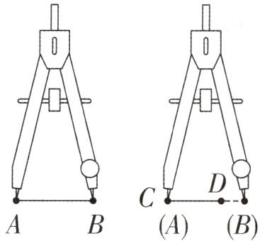 2. 如图,用圆规比较线段 AB 和 CD 的长度,下列选项正确的是(