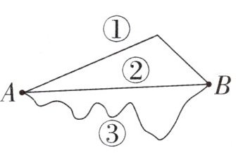 4. 如图,从 A 到 B 有三条路线可以选择,这三条路线长度的大小关系是(