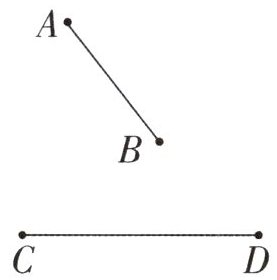 我发现:利用圆规比较线段 AB 和线段 CD 的长短,点 C 和点 A 重合。