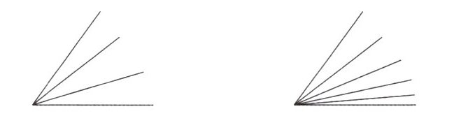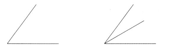 3. 从顶点出发,向左下方画另一条射线作为角的另一条边,形成开口向左的角。