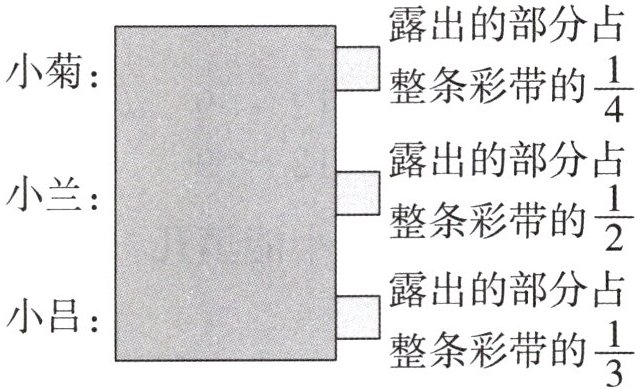 2. 下图中,三条彩带露出的部分长度相同,你知道谁的彩带最长,谁的彩带最短吗?在图中画出你的思路。