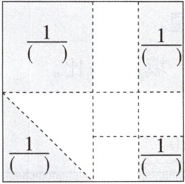 3. 下图中的每个涂色部分分别占大正方形的几分之一?想一想,填一填,并用一张正方形纸折一折,验证你的思考。