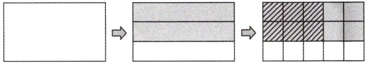1. 下图中大长方形的面积是 $1 cm^2$,计算画斜线部分的面积可列算式为(