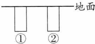 5. [新趋势·思维探究]两根水泥柱,第①根埋入部分是全长的$\frac {1}{2}$,第②根埋入部分是全长的$\frac {1}{4}$。请你画出两根水泥柱露在外面的部分,并比较两根水泥柱的长短。